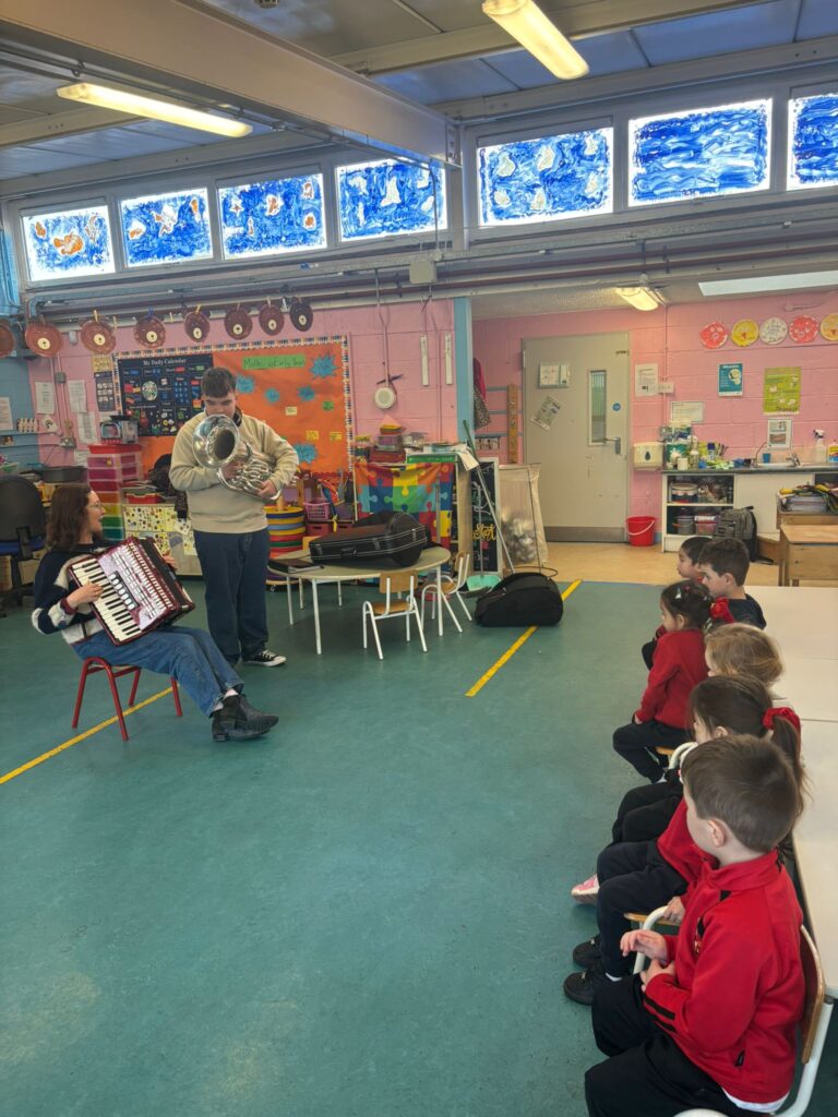 There is two sessions daily one staring at 8.50am - 11.20am, and the second session starting at 12 noon - 2.30pm. Class size is 15 in each session. There is a strong focus on pre reading and pre writing activities. The Aistear programme is implemented in Early Start.